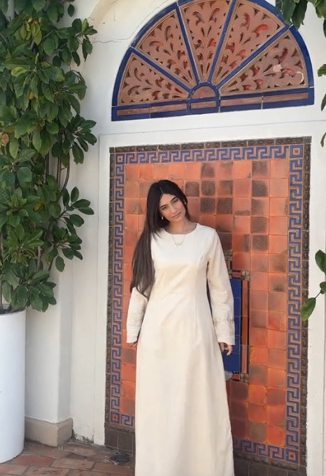 Explore this season's most effortless modest dress, with the perfect linen blend and 100% all natural materials.